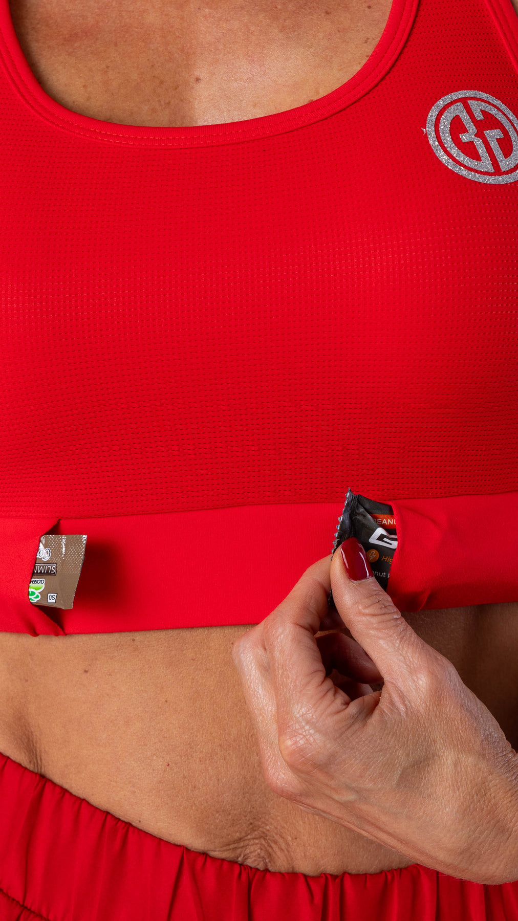 Less is more but attention to detail is everything! TAKE A LOOK CAREFULLY HERE: where Function and Fashion meet - GEL POCKETS ON THE BANDS to hold up to 8 sachets on your body. You can add 2 on the front and back outside and if necessary 4 on the inside too!!!