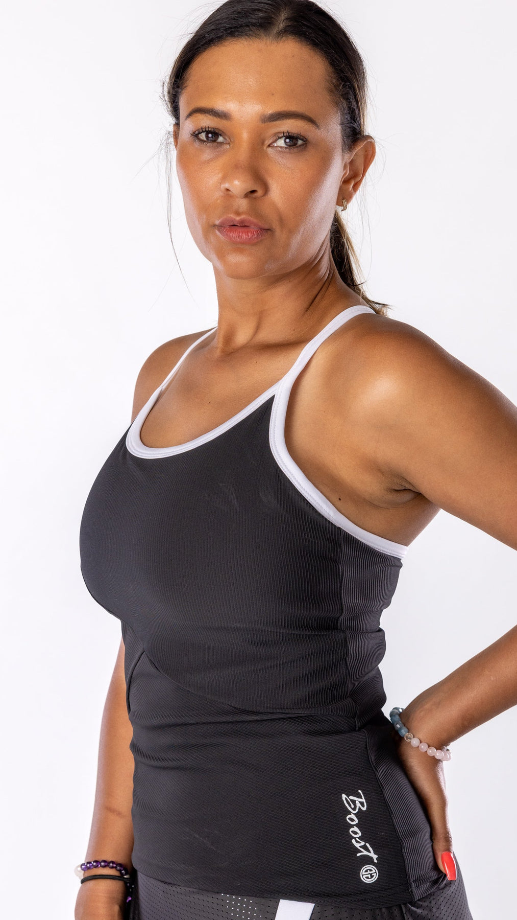 A basic Summer Vest with some special detailing. There is nothing better than a great fitting strappy vest with an INNER inside for summer. We hate wearing a bra with a strappy vest.